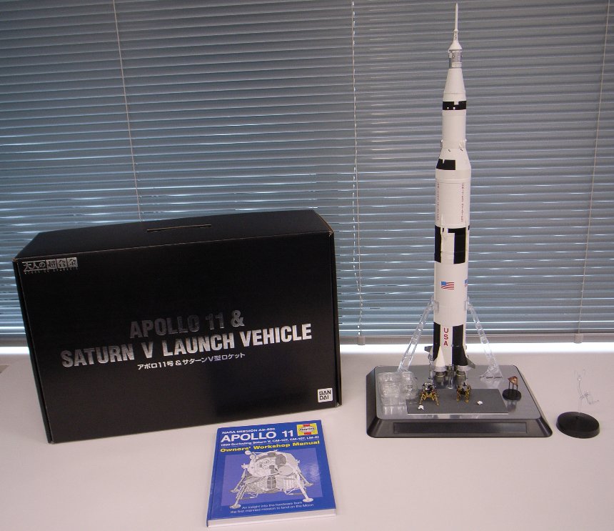 アポロ11号が月面着陸を果たしたのは1969年7月のことです。昨年はちょうど40周年にあたり、さまざまなイベントが各地で行われました。私(鷲北)は、バンダイが発売を発表した「大人の超合金:アポロ11号&サターンV型ロケット」を予約して、ずいぶん待ったのですが本日ようやく到着し、組み立てることができました。自宅には置く場所がないので、研究所の一角に置かせてもらっています。
