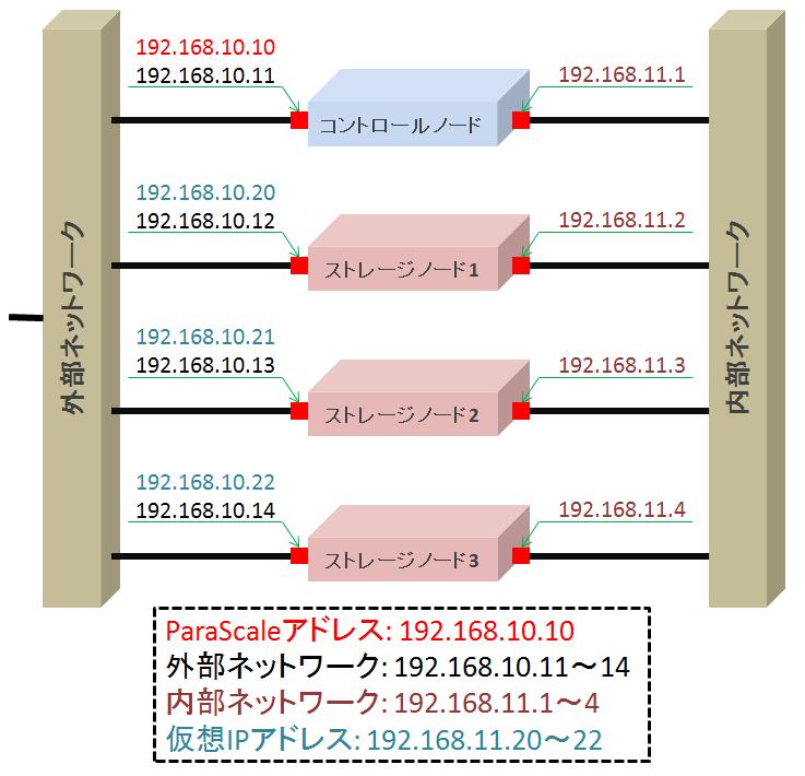 ParaScaleでは次のようなIPアドレスを設定する必要があります。