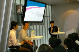 11月10日~12日の3日間、幕張メッセにおいて第2回クラウドコンピューティングEXPOが開催されました。さくらインターネットは来年完成予定の石狩データセンターを模したブースを出し、1時間程度のセッションを毎日3回行いました。このうち11月11日、13時からのセッションに、株式会社はてなのCTO田中さんと、サービス開発部の倉井さんをゲストにお招きし、さくらの仮想サーバサービスや新データセンターに対する疑問質問をぶつけていただきました。