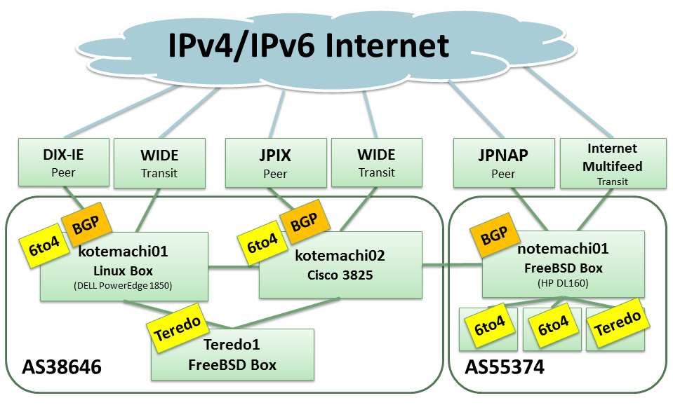 現在では、国内の主要なIX(Internet eXchange)であるDIX-IE、JPIX、JPNAPにリレールータを接続し、主要なプロバイダとのピアリングを行っていますので、国内の6to4の通信品質はずいぶん向上したといえるでしょう。