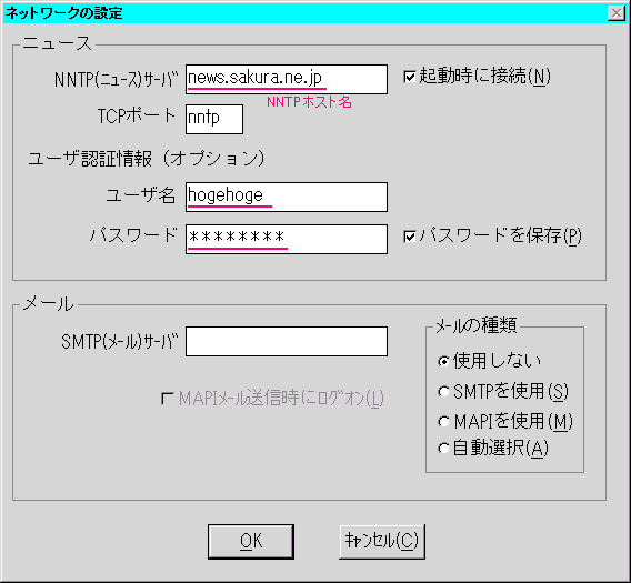 - ログインサーバ:news.sakura.ne.jp