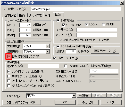 「さくらのレンタルサーバ」ではメールサーバ(SMTP,POP)への接続にSSL/TLSを用いることが可能となっておりますが、現在SSL証明を発行しておりません。
