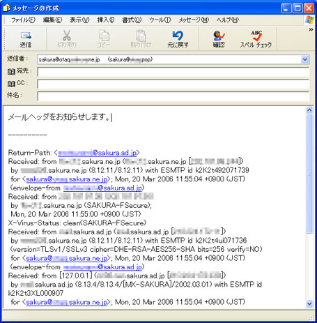 「このメッセージのインターネット ヘッダー:」という画面に切り替わります。→図3