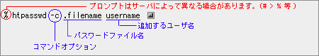 基本書式 htpasswd [オプション] [対象のパスワードファイル] [ユーザ名]