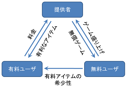 提供者・・・有料会員は売上をもたらし、無料会員は報酬を渡さずともゲームを盛り上げてくれる