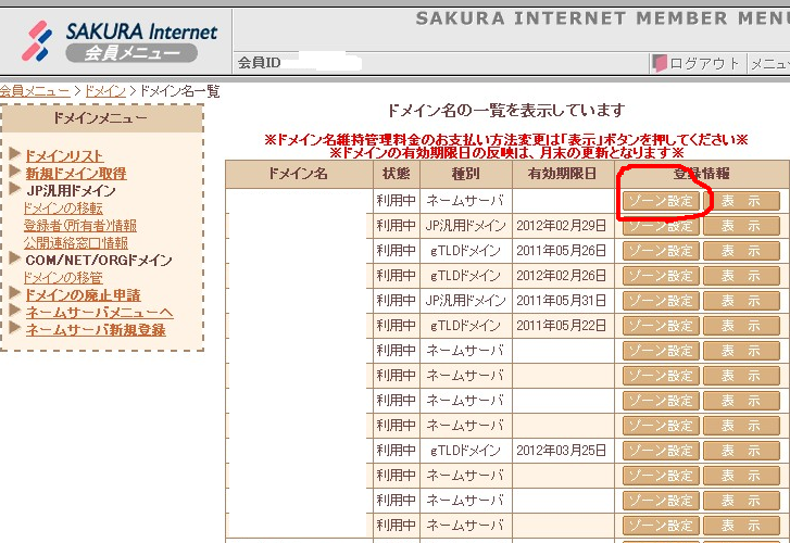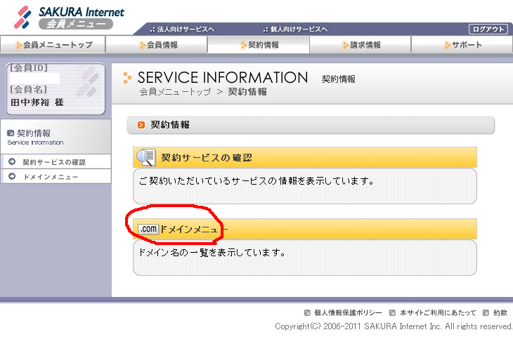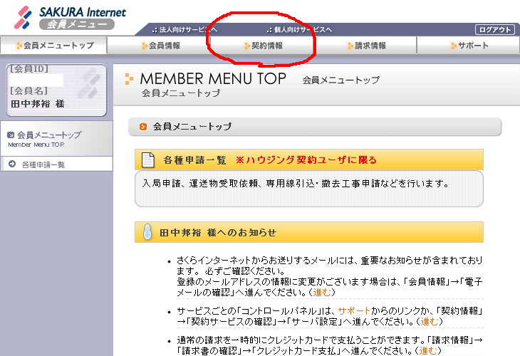 会員メニュー: https://secure.sakura.ad.jp/menu/