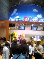 食博のブースの中でも一際目を引くのが、関西電力と大阪ガスのブースです。 関西電力のブースでは、とうもろこしやぶどうなどの、わけのわからんキャラクターが、歌い転げていました。