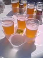 ちなみに、サントリーのブースで4種類の異なる天然水のビールを、飲み比べられるセットが、600円で売っていました。ただ、南阿蘇が売り切れていたので、大きめ3種類になりました。