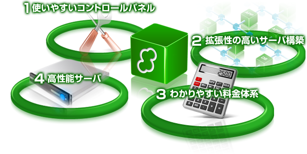 目指したものは「お客様が求めるITプラットフォームをいち早く、分かりやすく提供すること」。サーバからオプションまでの4つのサービス品目以外は余計なものを省き、見通しを立てやすい月額/日割の課金体系でご提供。それを妥協のない性能と共にお使いいただくことができます。