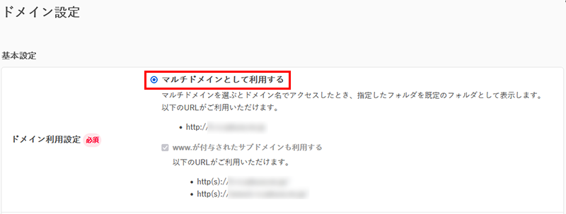 5「ドメイン利用設定」の『マルチドメインとして利用する』にチェックをいれます
