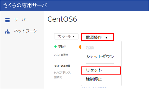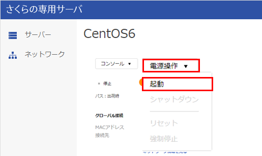 「さくらの専用サーバ」ではコントロールパネルより、リモートでの電源の起動、停止、再起動が可能です。