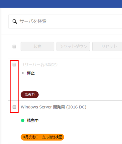 2操作したいサーバーの、各サーバー名称の左側にあるチェックボックスにチェックをいれます。