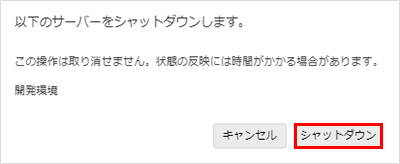 対象サーバーをご確認の上『シャットダウン』をクリックします。