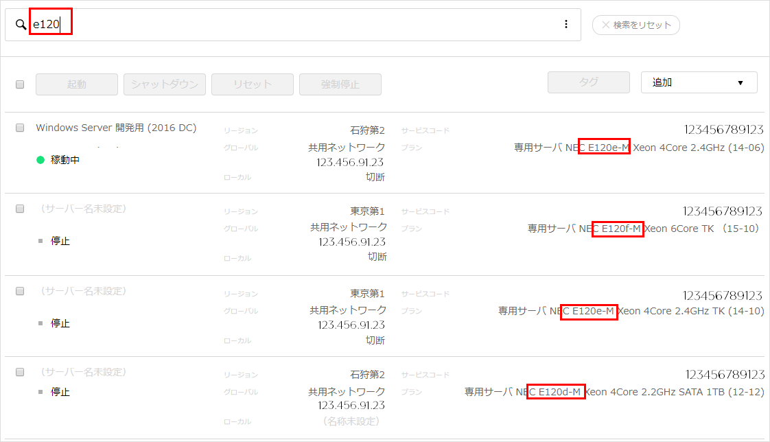 選択した項目に該当するサービスのみが表示されます。
