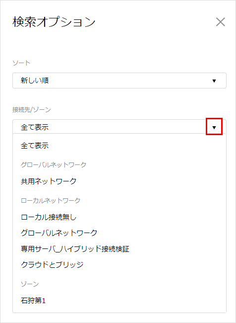 2接続先/ゾーンの枠内にある「▼」をクリックすることで選択肢が表示されます。