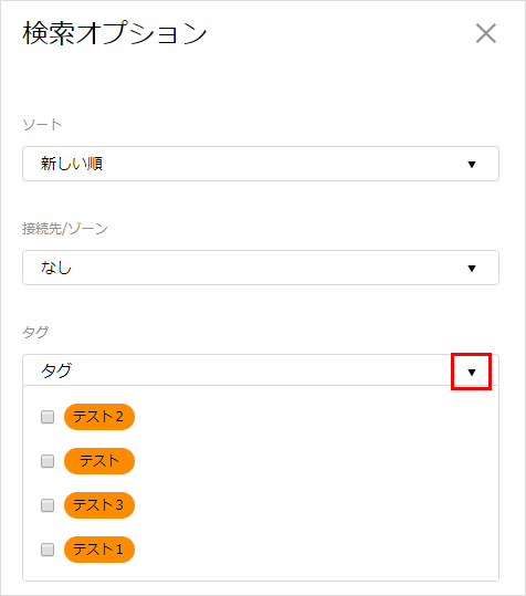 3タグの枠内にある「▼」をクリックすることで選択肢が表示されます。 選択したタグを付与しているサービスのみが表示されます。