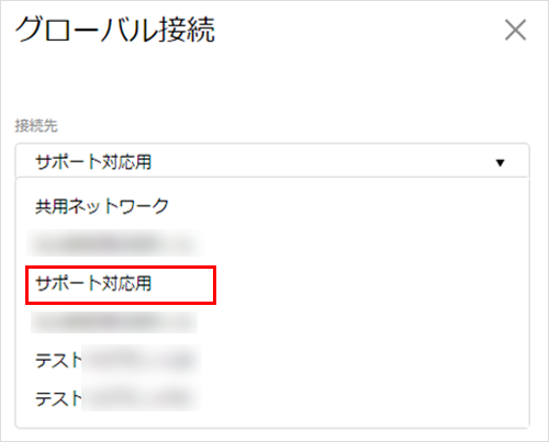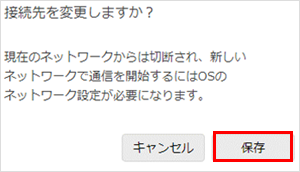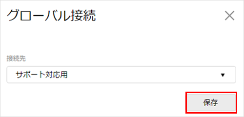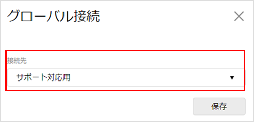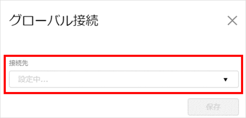 接続先ネットワークの切替1画面上部の右側の「設定▼」から、『グローバル接続』を選択します。![]() 2「接続先」の中から、切り替える先のネットワーク名を選択します。![]() 3『保存』をクリックします。![]() 4注意事項が表示されます。
