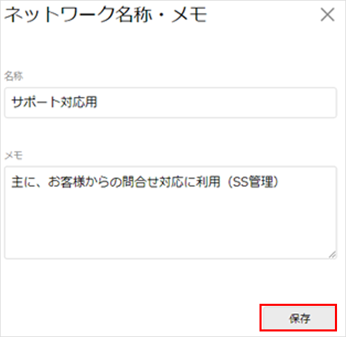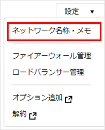 ネットワークの名前・説明変更1画面上部の右側の「設定▼」から、「ネットワーク名称・メモ」を選択します。![]() 2表示されたネットワーク名称・メモを、それぞれ編集します。