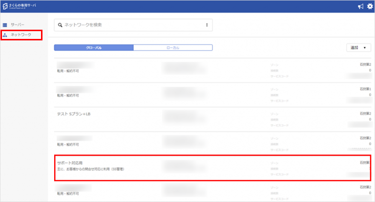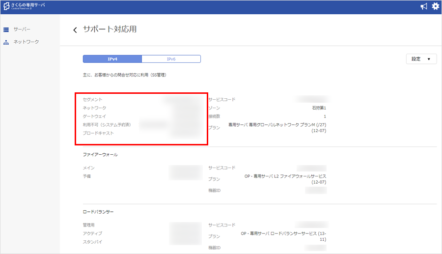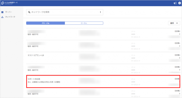 - 専用グローバルネットワークをご利用いただく場合、必ず「さくらの専用サーバ コントロールパネル」からグローバルネットワークの切り替え作業と、サーバー設定変更作業を行っていただく必要があります。