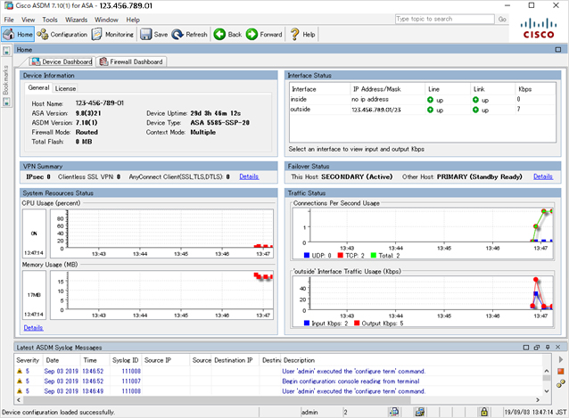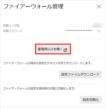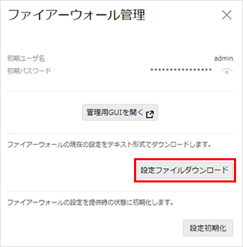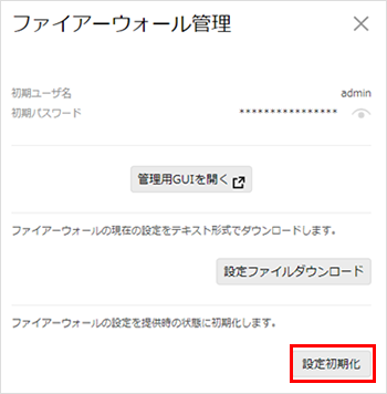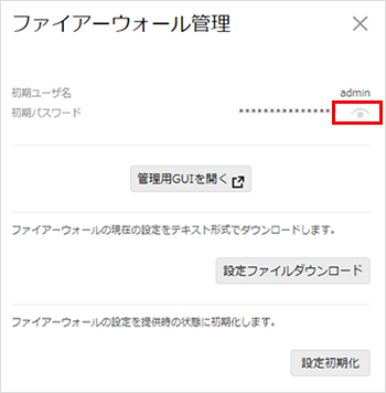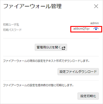 ファイアウォールの初期(提供時)パスワード確認
