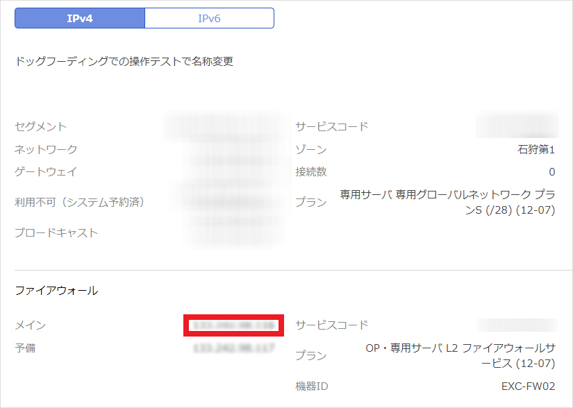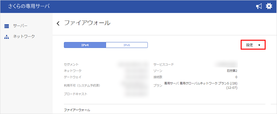 - ファイアウォールの管理ツールにログインするために必要なIPアドレスは、コントロールパネルから確認可能です。