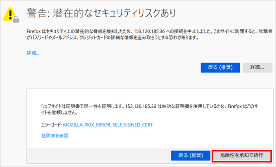 6ご利用されるブラウザにより警告が表示されます。