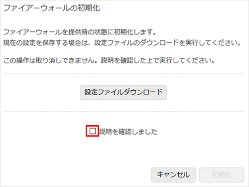 4『ファイアウォール管理』をクリックします。5『設定初期化』をクリックします。