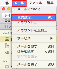 1上部の[ メール ]の中の『 環境設定 』をクリックします。