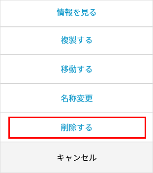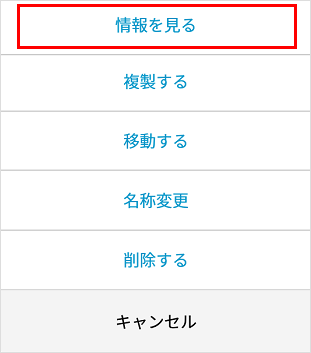 1対象ファイル/フォルダ名の右側のメニューアイコンをタップします。