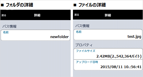 3詳細画面から、ファイル/フォルダの詳細を確認することができます。