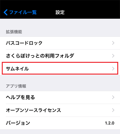 4『 サムネイル表示 』をタップします。これで設定は完了です。