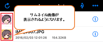 サムネイルの設定をオンにすることにより、どの画像ファイルなのか見分けやすくなります。