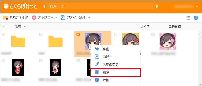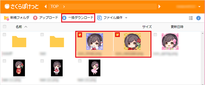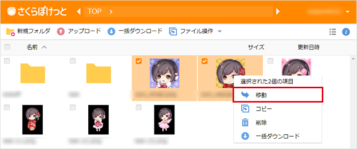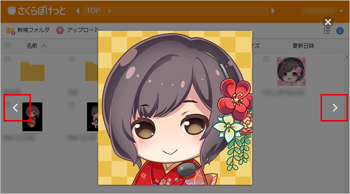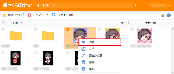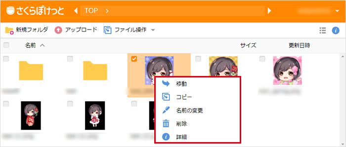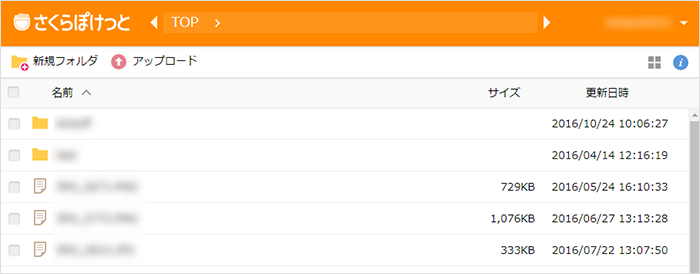 - さくらぽけっとを快適にご利用いただくために、1つのフォルダの直下に 設置されるファイル/フォルダの総数は1,000までを目安としてください。