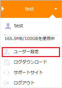 設定などのメニューが開きます。サーバーの現在の容量が表示されています。