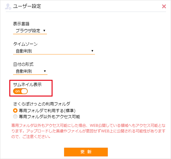 そのため、さくらぽけっとアプリ版でサムネイル表示をオフ時にサムネイルフォルダを削除された場合、ブラウザ版を開くと自動的にサムネイルが作成されます。