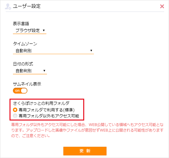 さくらぽけっと専用のフォルダ以外へアクセスを行うことが可能になります。