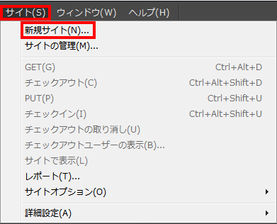 2『 サイト(S) 』メニューから『 新規サイト(N)… 』をクリックします。