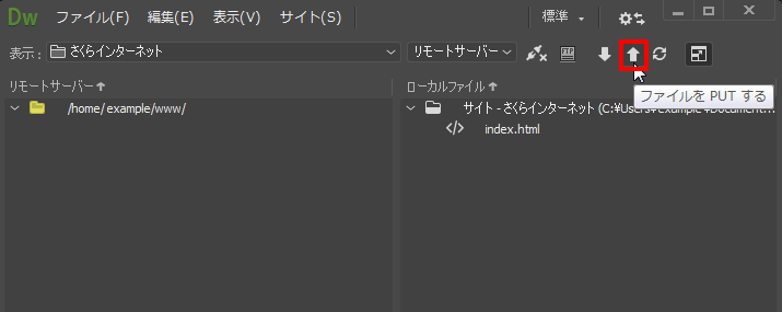3右の枠(ローカルファイル)からアップロードしたいファイルやフォルダを選択し、 『 ファイルをPUTする 』ボタンをクリックします。