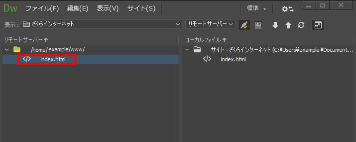 接続に成功すると、左の枠にリモートサーバーの内容が表示されます。