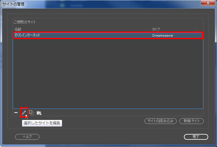 変更したいサイトを選択し、『 選択したサイトを編集 』ボタンをクリックします。