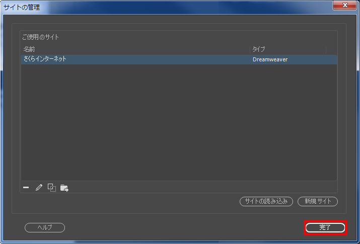 8「 サイトの管理 」の画面に戻りますので、『 完了 』をクリックします。