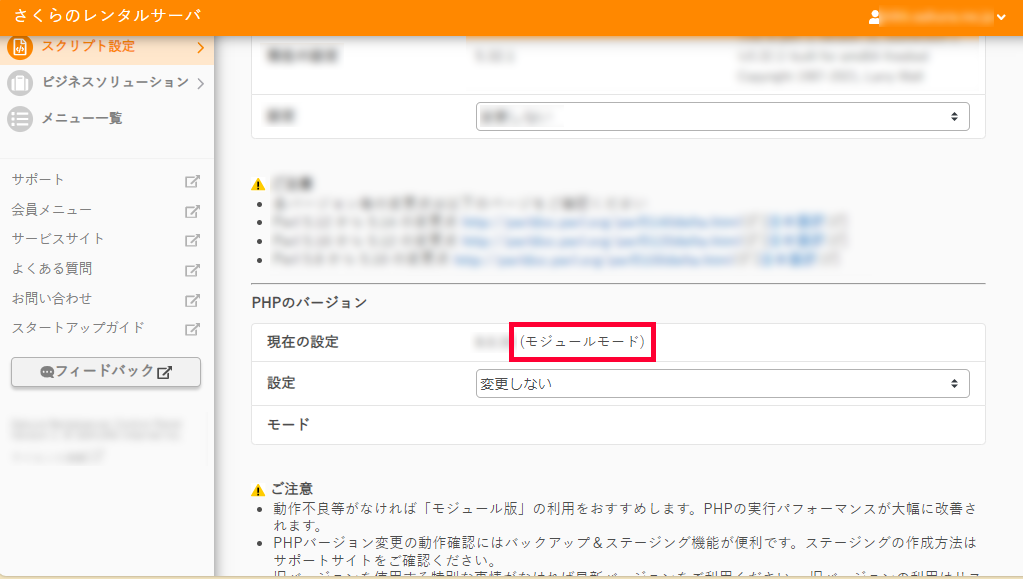 お使いのプランでの「モジュール版PHP」ご利用可否は、以下をご確認ください。