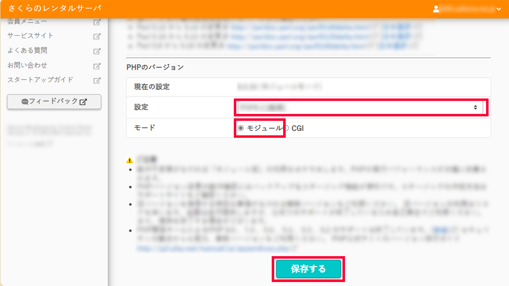 ※「さくらのマネージドサーバ」のOSがFreeBSD9.1のサーバーでは、OSの仕様によりPHP「8.2」とPHP「8.3」が利用対象外となります。