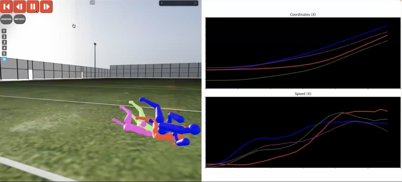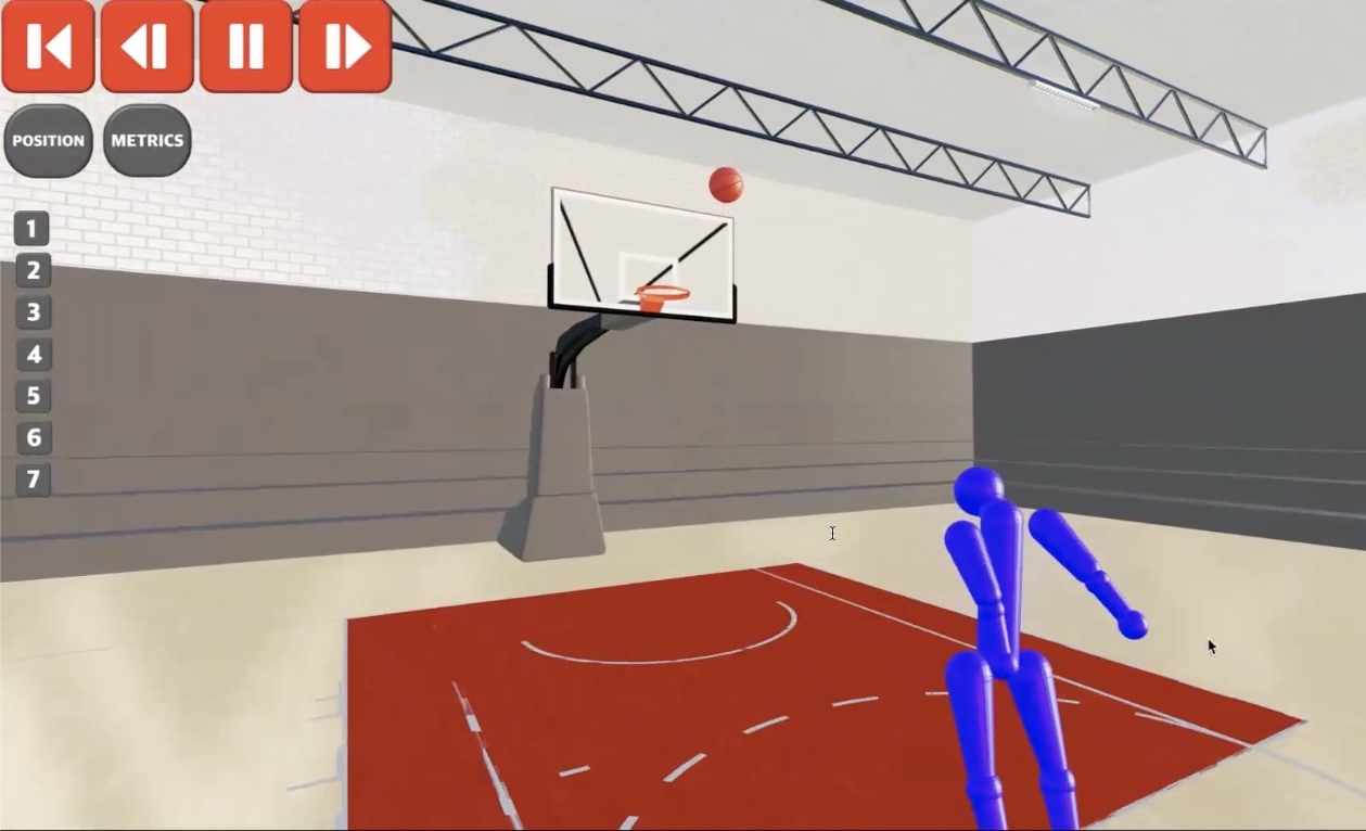 3DCGなので、自由に画角を変えて、動画では見られないような視点から自分たちのプレーを確認することができます。例えば上からの視点にすると、自分がどのような角度でボールに向かって飛んでいるのかがわかるようになります。また、全体を俯瞰して見ることもできます。