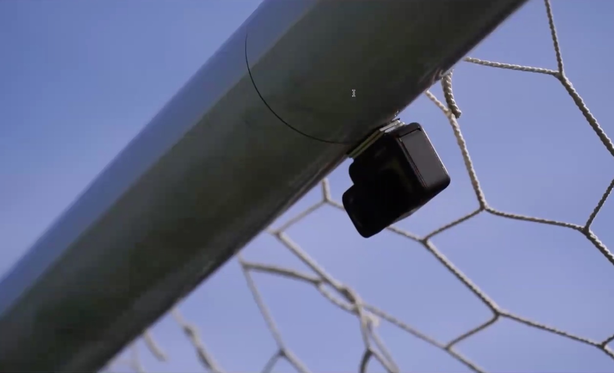 ゴールのクロスバーの左右2か所にカメラを設置します。カメラに磁石を付けることでゴールへの設置を容易にし、わずか3秒でカメラを設置できます。