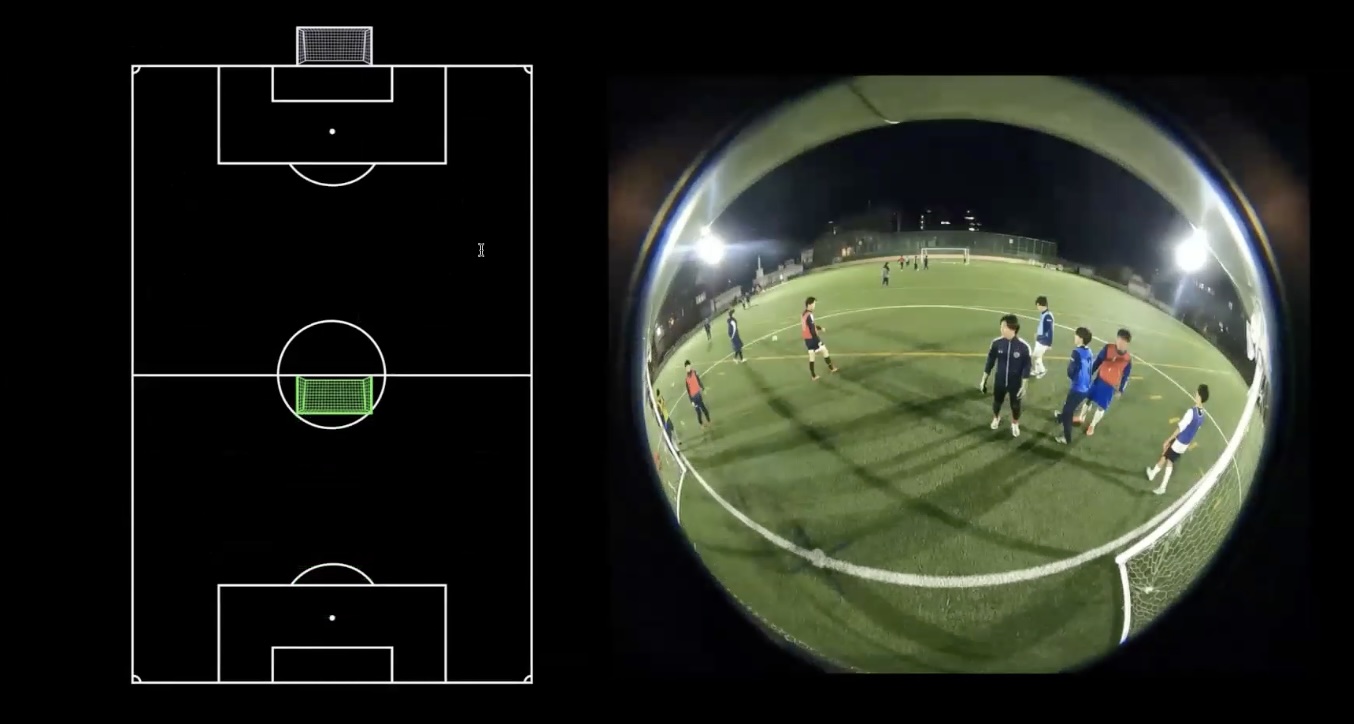 2台のカメラを磁石でゴールに設置してすぐ撮影を開始できるのはSMART GOALの大きな特徴の一つなのですが、一方でグラウンドに固定されたカメラとは異なって、カメラがどの方向を向いているかという角度を推定してあげる必要があります。我々はサッカーのピッチの特徴を生かして、この問題を解決することにしました。