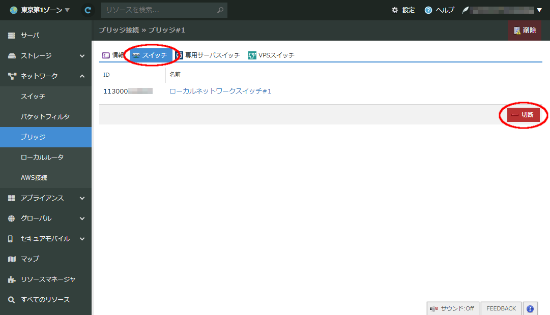 - 外部回線接続サービス をご利用されているスイッチに対してブリッジを接続する事はできません。 ハイブリッド接続 を別途お申し込みください。