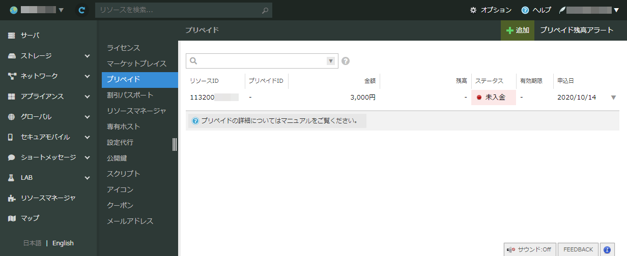 - プリペイドIDを登録しているクラウドアカウントを削除した場合にはプリペイドは残高や有効期限に関わらず失効します。復旧を行うことは出来ませんのでご注意ください。