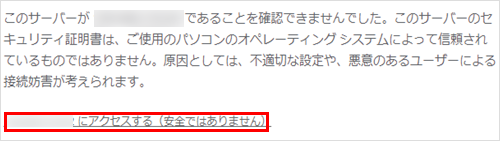 ウェブブラウザ上で警告が出る場合がございますが、ブラウザごとの操作に従い、そのままアクセスしてください。