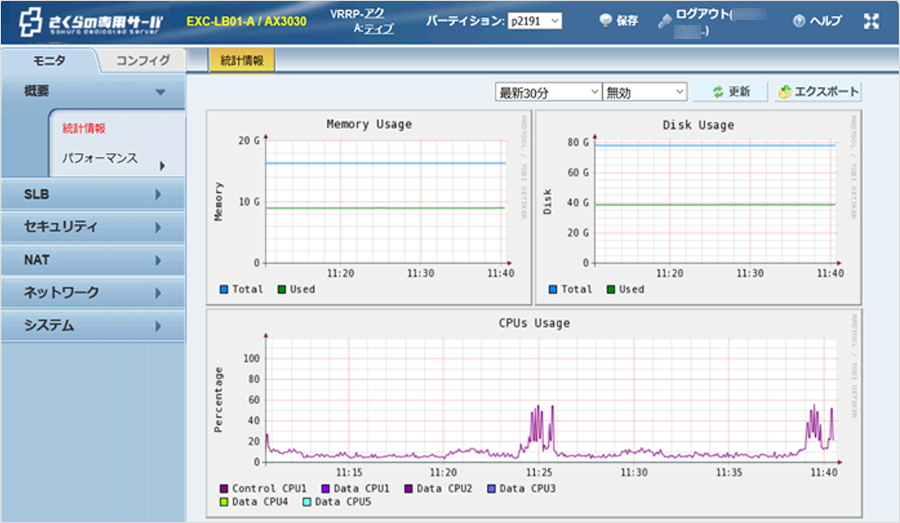 メモリ、ディスク、CPUの負荷等ステータス表示画面